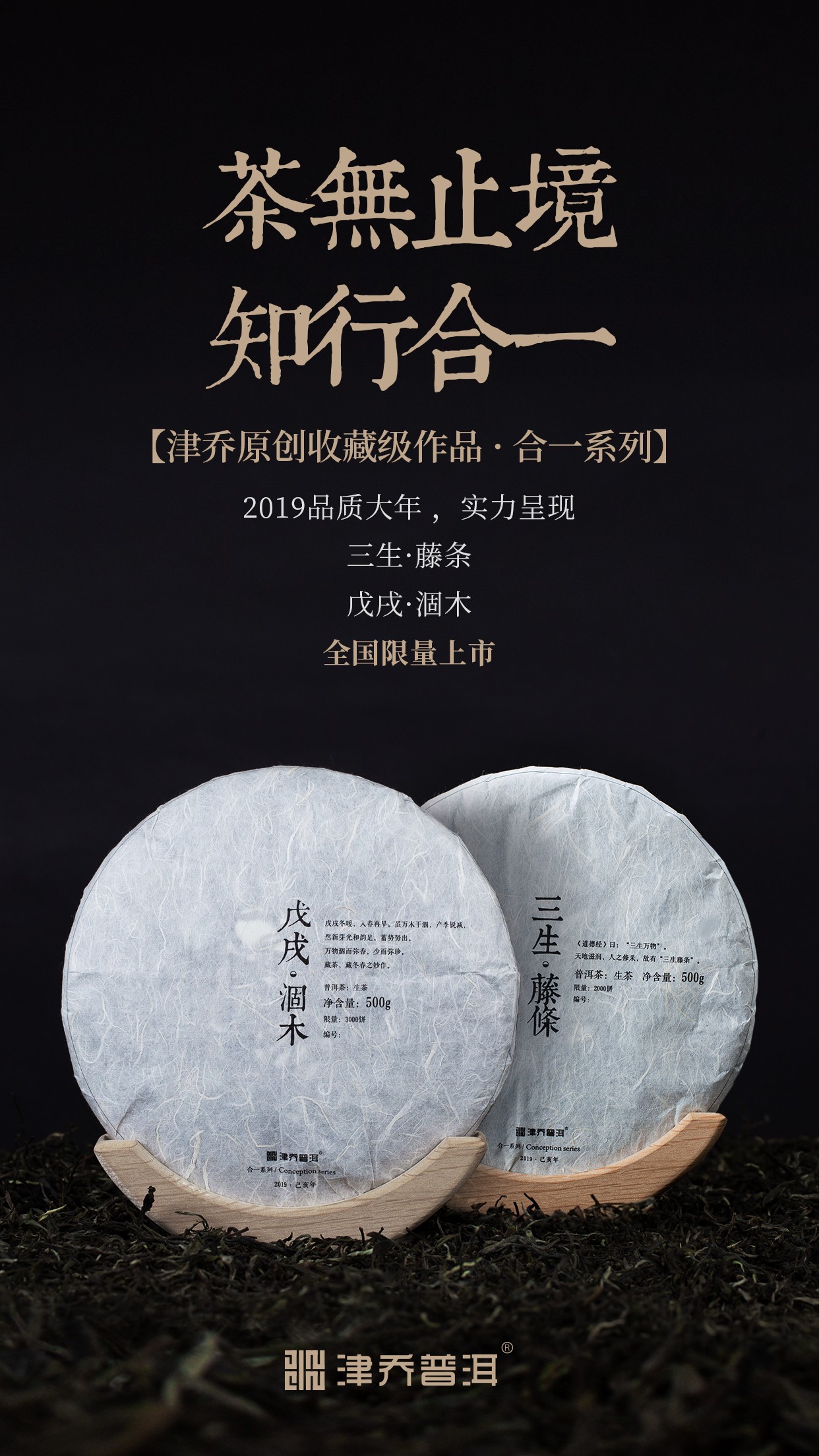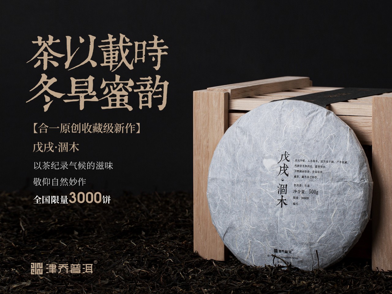 戊戌·涸木,延续津乔合一系列创作理念,精选2019年明前优质古树春茶制作。由于原料珍稀有限,取消出品“小铁盒”鉴赏版,仅限量出品3000饼。