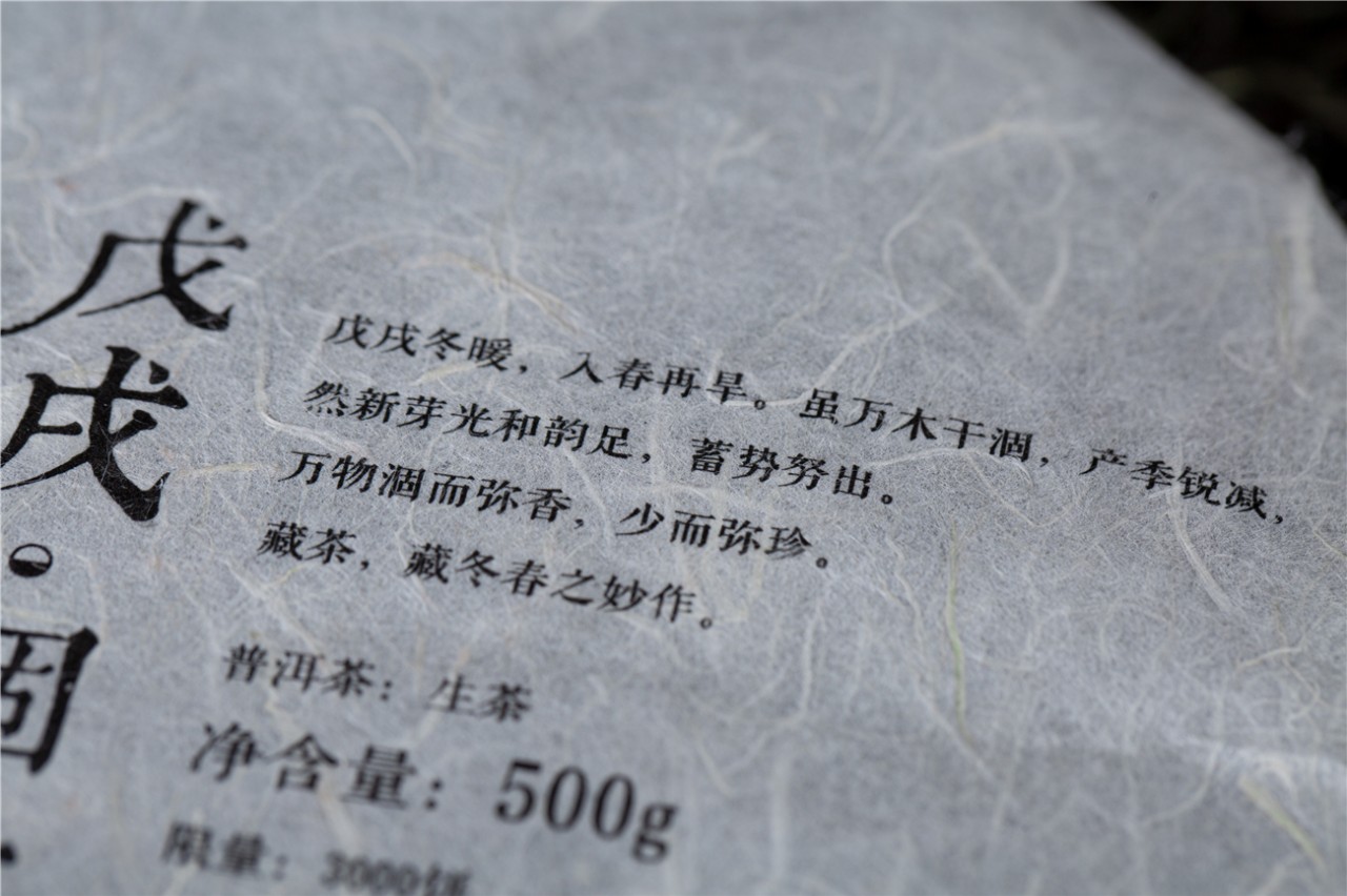 [释文:戊戌冬无寒少雨,到了春季气温剧升,茶区严重干旱。很多树木都枯竭了,整个春茶季产量锐减。但正由于干涸(hé),古树汲取深处营养缓慢抽芽,成就高香妙韵。“涸木”与“和睦”同音,这是自然界浓缩即精华的平衡守则。藏茶,收藏大自然鬼斧神工的杰作。]