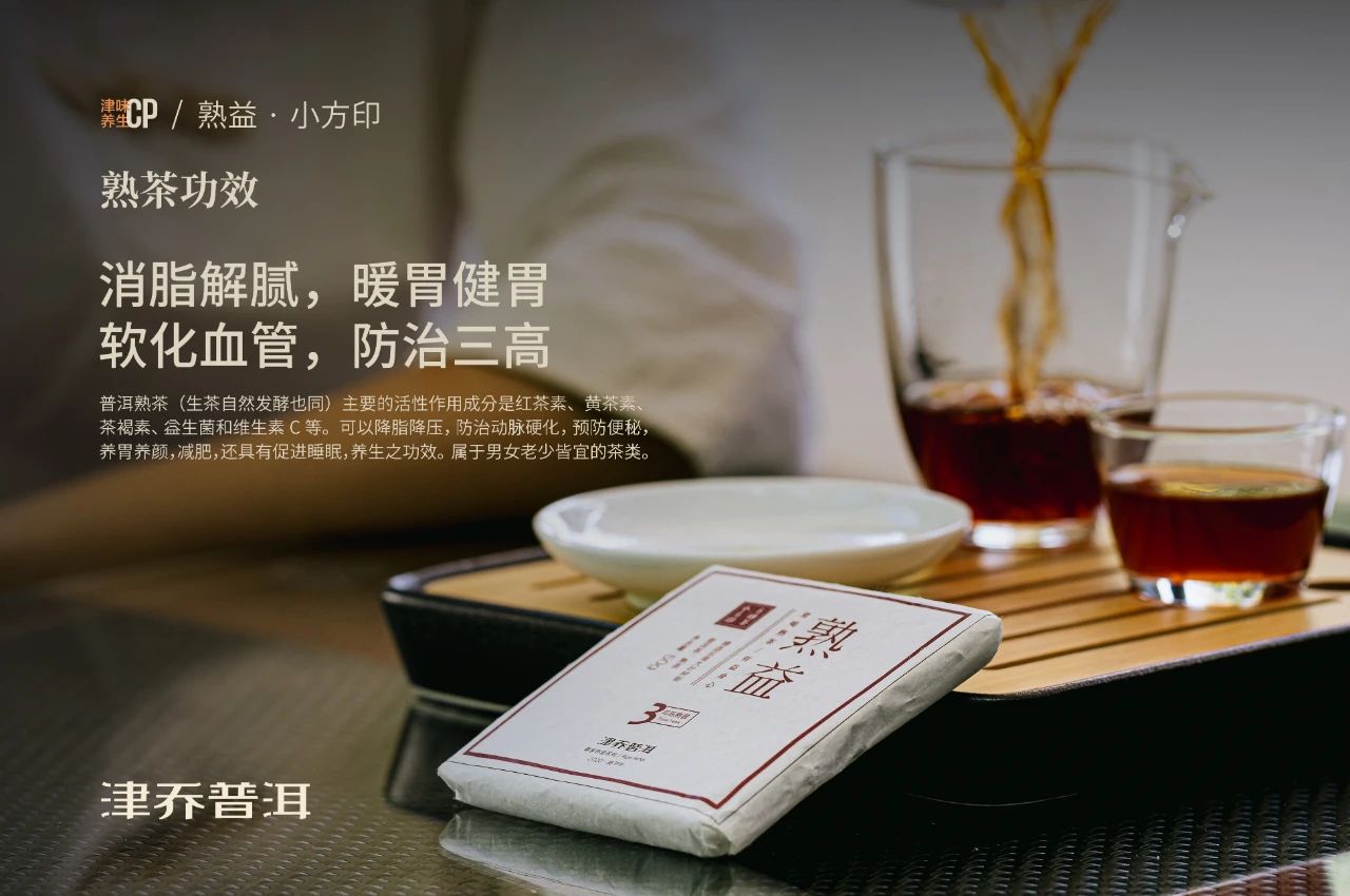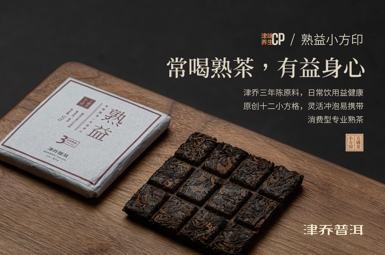 熟益·小方印,津乔经典的“小方印”形制,在原本“8gx6格”的基础上,升级为“4g×12格”,取量更灵活,更适应现代茶生活。