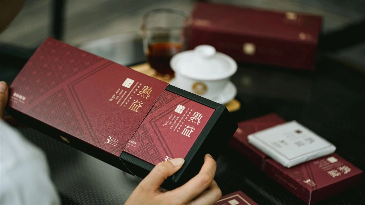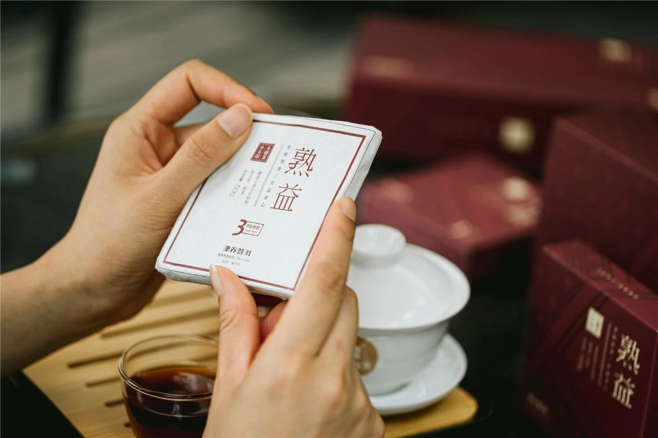 熟益,以茶“常喝熟茶,有益身心”为理念,通过优质原料珍选,三年仓储珍藏,由津乔原创工艺压制而成的“十二方格”方砖茶。
