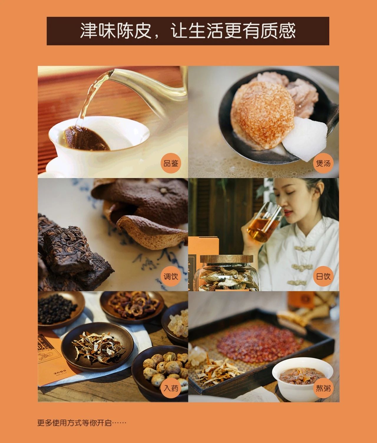 不管何种使用,将陈皮融入生活,是健康的爱护,品质的提升。