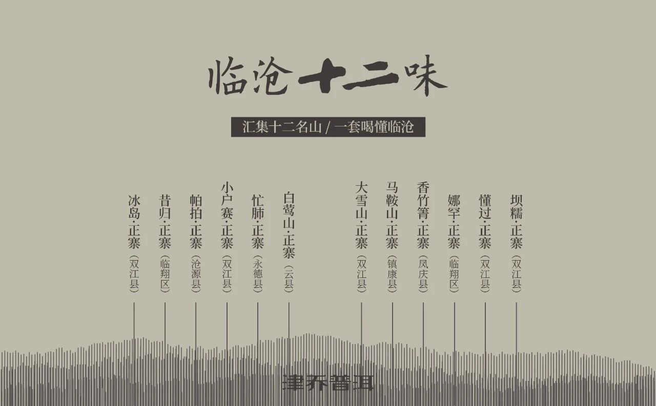 “临沧十二味”包括冰岛、小户赛、大雪山、懂过、坝糯、昔归、娜罕、帕拍、忙肺、白莺山、马鞍山、香竹箐12座知名茶山。因品质优异,“十二山”共同构成了临沧产区“最美组合”。