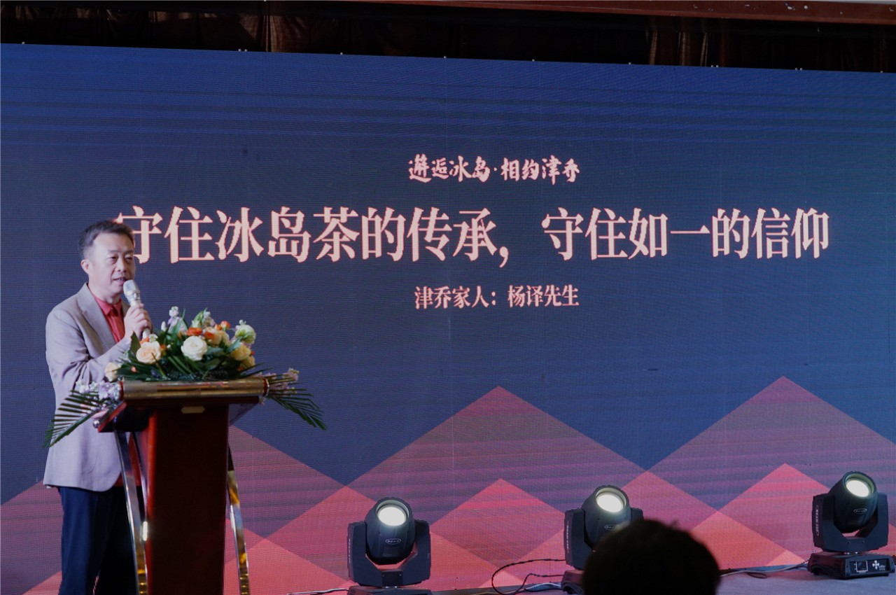 活动正式开始,总经理杨绍巍先生发言,他首先以大会主题“邂逅冰岛·相约津乔”内涵做了诠释,对普洱茶的行业趋势分析和津乔品牌战略规划、未来发展做了详实阐述。