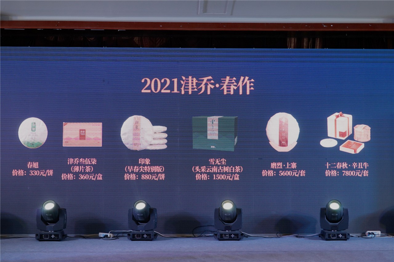 随后,活动来到了振奋人心的新品发布环节,此次发布会分为“2021津乔·春作”和“2021津乔·冰岛”两个部分,总共11款单品全部亮相。其中全新亮相的“津乔叁伍柒(薄片)”、“雪无尘”和顶级单株茶品“冰岛1485(500龄/600龄)”引来大家热烈关注和点赞。
