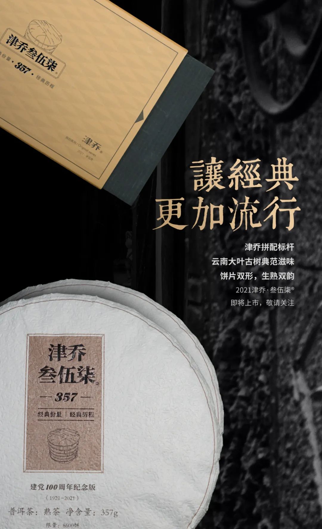 对于“357”历史的这份感动,通过品牌代表作品“津乔叁伍柒®”这样一款茶,致敬历史,传承经典,传递经典,让更多人了解普洱茶的历史,更珍惜今天我们得到的精致好茶。
