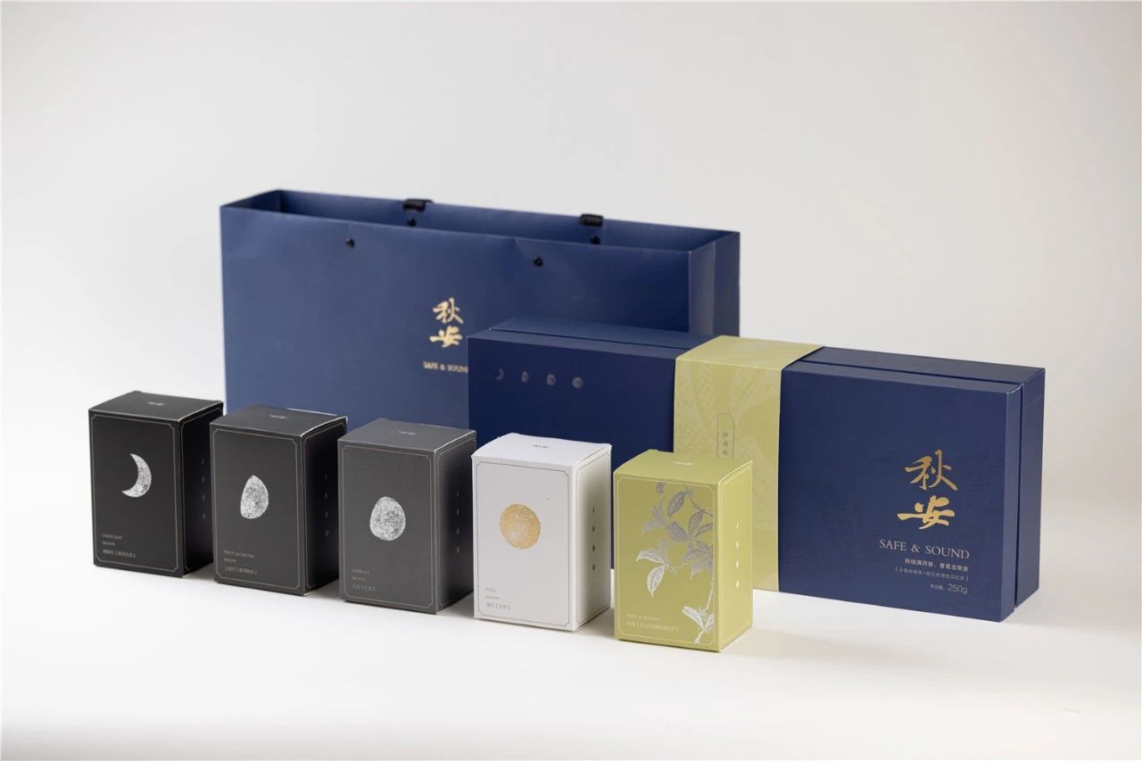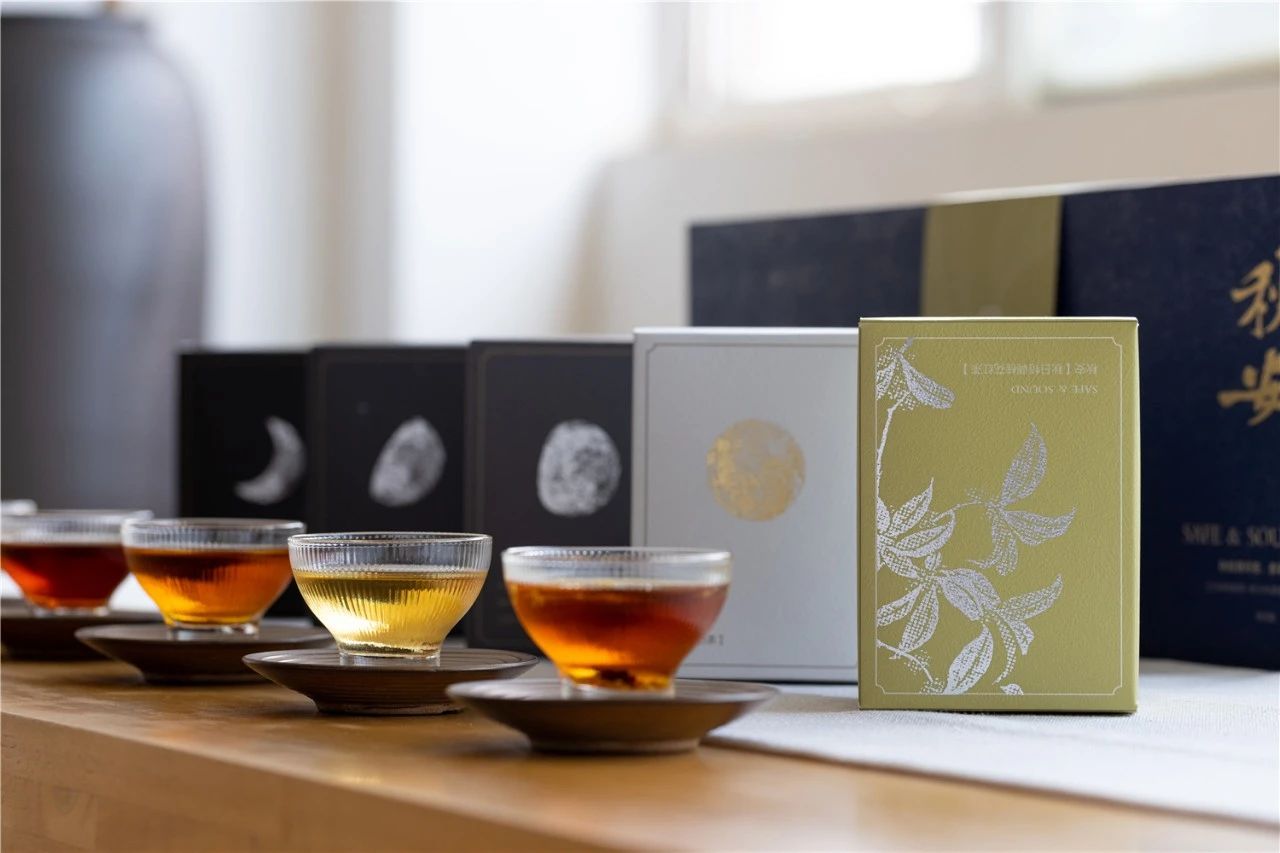 说到中秋礼,必须要提到的是“秋安”,这款专为秋日准备的茶礼。“秋安”礼盒精心搭配,特调桂花红茶携生、熟、红、白于一盒,兼顾一家人不同口味,份量适中,品质讲究,是对秋日最好的问安。