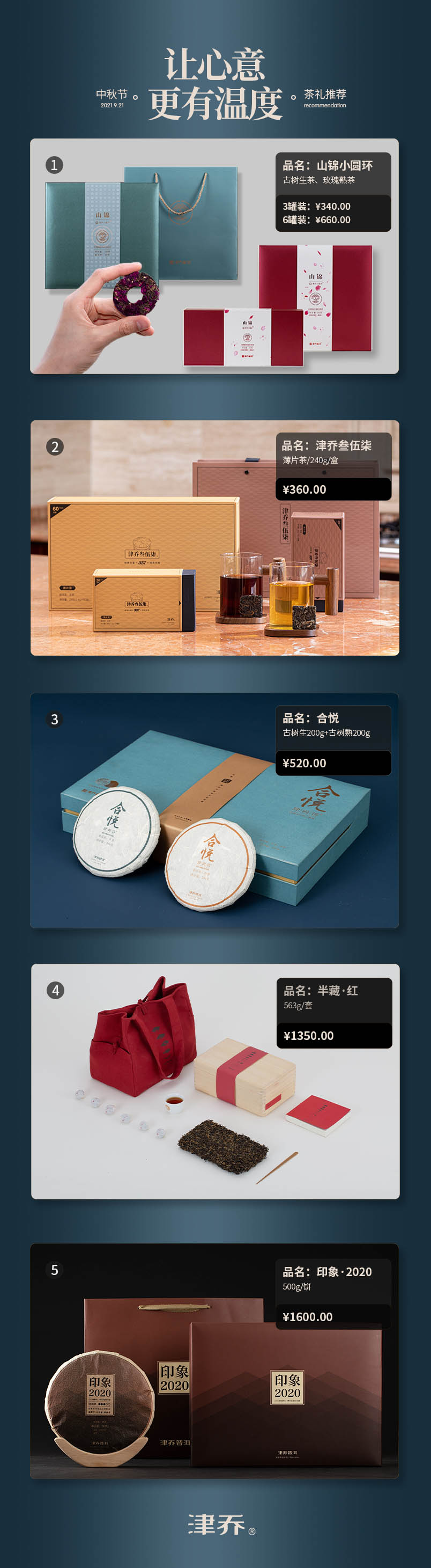 除了上面两款已经基本售罄的爆款,津乔在这个中秋特别选出了5款适合中秋、且能买得到的茶礼推荐给大家。