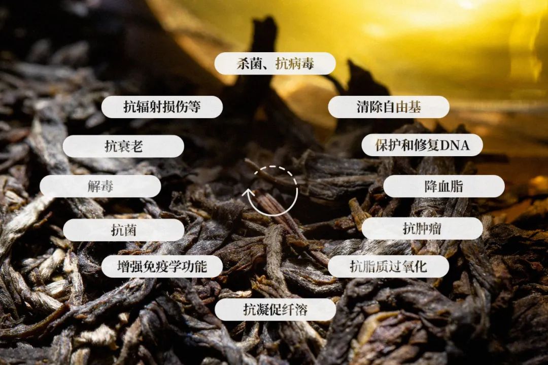 “单宁”具有杀菌抗病毒、清除自由基、保护和修复DNA结构等生化活性,这些生化性质使得茶叶具有降血脂、抗肿瘤、抗脂质过氧化、抗凝促纤溶、增强免疫学功能、抗菌、抗病毒、解毒、抗衰老、抗辐射损伤等生理功效。