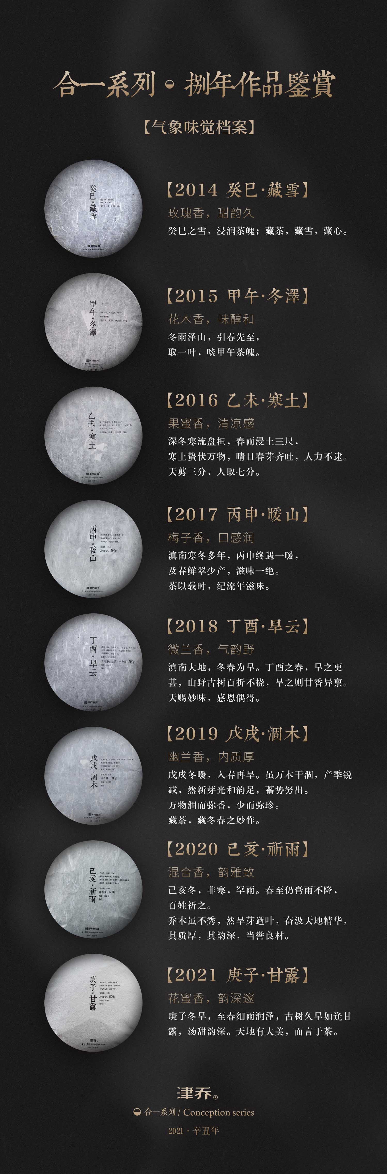 津乔“合一系列”的经典不止是对茶季气候的记录,更因它优质与独特的品质,成就了其巨大的转化空间。茶以载时,用茶纪录气候的滋味,或许是世间最美妙的方式。