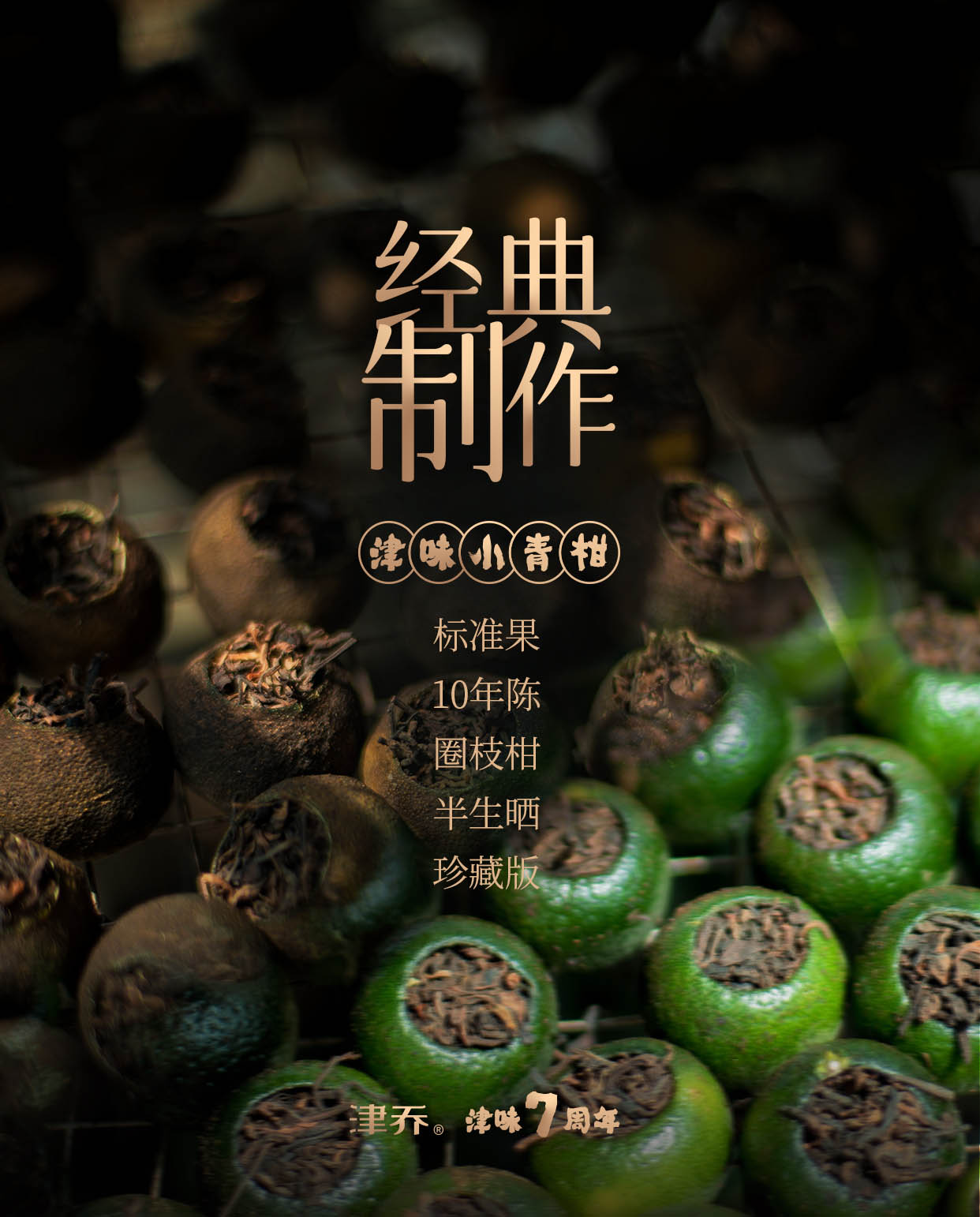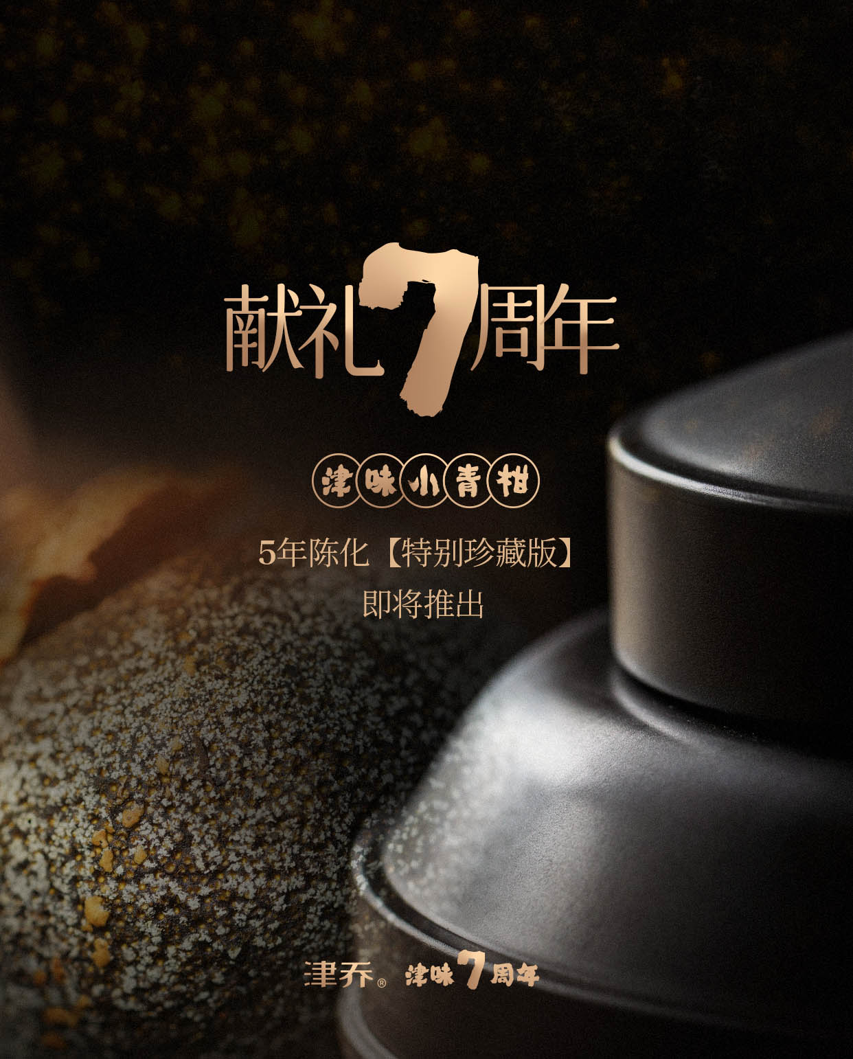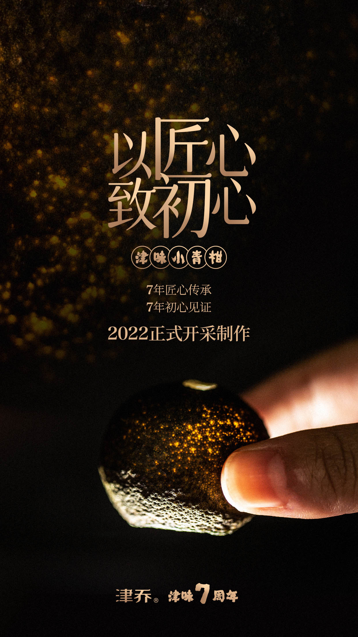 2022年,津乔迎来小青柑7周年,对7.0时代给出全新理念:“以匠心,致初心”。通过7周年时间节点,见证匠心传承,初心不改,传递“津味”背后的制茶理念:一个真正的匠心品牌,是在坚守初衷中精益求精。