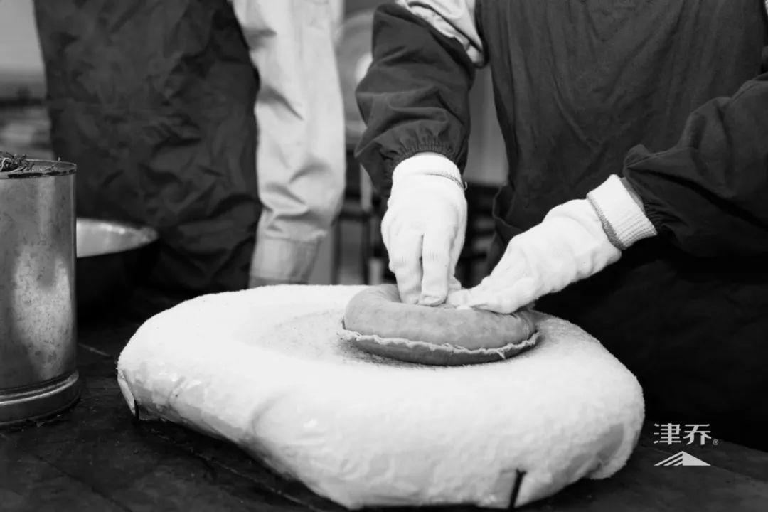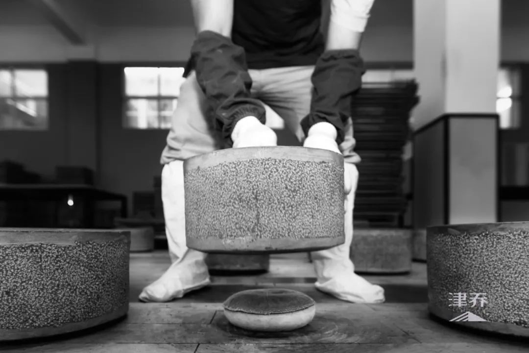 在使用石磨压茶时,具体的方向、程序、时间都有讲究,对人的技术、体力等各方面都是考验。