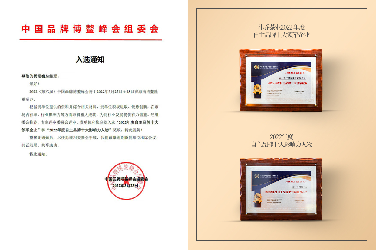 此项重磅荣誉的获得,不仅是组委会对津乔在行业内的高度认可和充分肯定,更是津乔砥砺奋进,稳健前行的硕果,同时也给津乔茶业的进一步发展带来了信心和决心。
