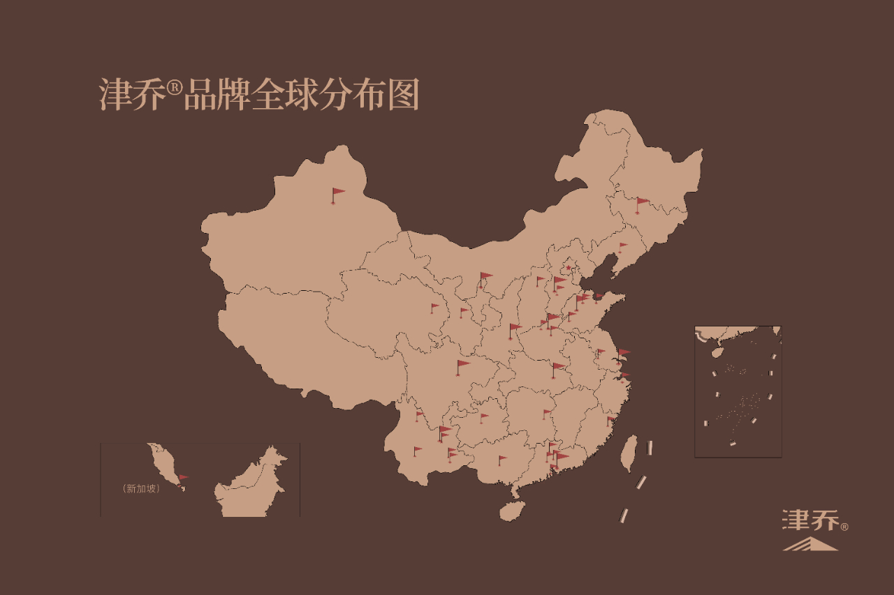 15年间,津乔不断扎实品质,做强口碑,向市场推出了100余款经典茶品,与30多家单位签约成为合作伙伴,专营店分布在全国20多个城市,超过100个销售点,区域覆盖上海、深圳、新加坡等地。