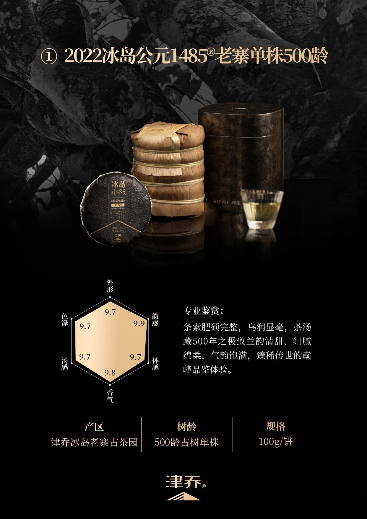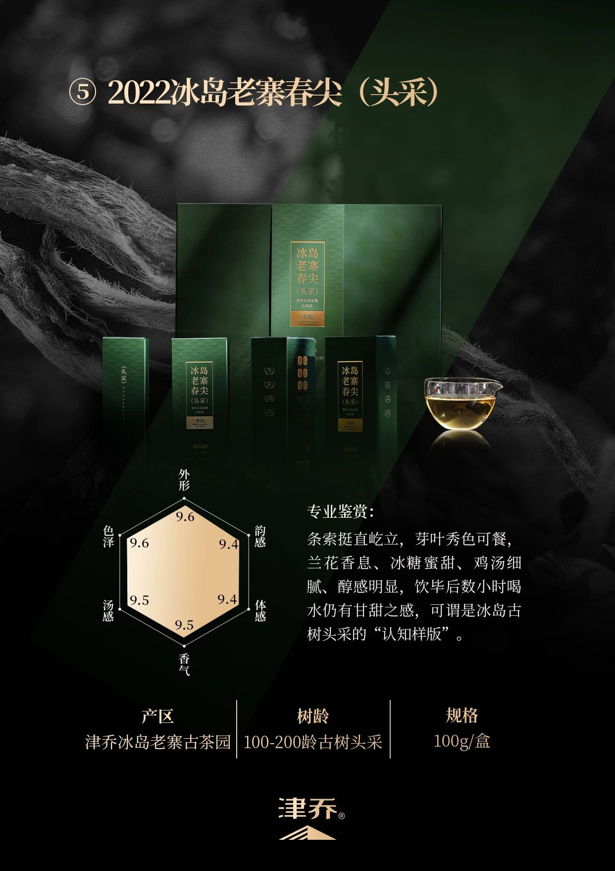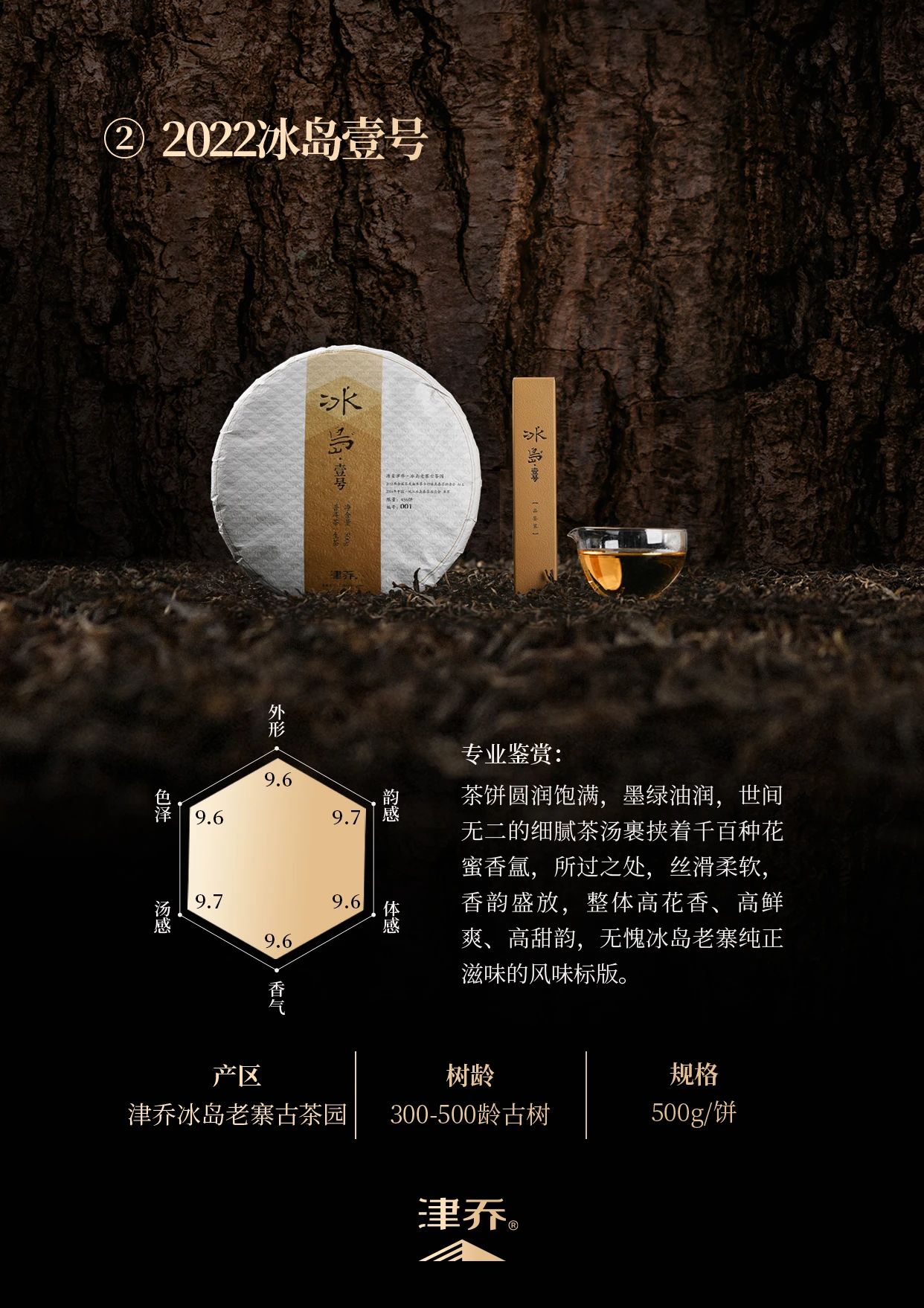 2022年,津乔仍以高端纯正冰岛为定位,用60载的光辉制茶技艺锁存老寨时光,用多款经典茶品诠释冰岛高度。