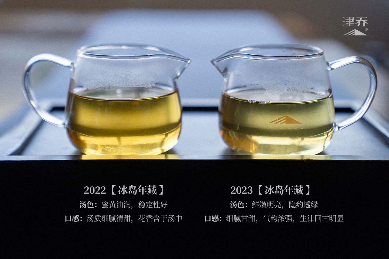 为了更好的对比转化效果,津乔茶学堂进行了一次专项品鉴会,用2022、2023出品的两款年藏,看跨季冰岛茶的收藏价值。