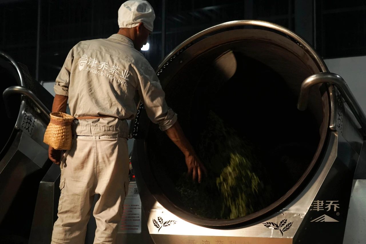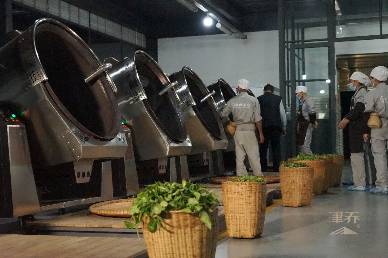 津乔初制厂最新添置的杀青锅,也叫朝天锅。它可以随时调节铁锅开口的高度、锅内的温度以及转动的速度,这样的杀青锅,能够让工人在杀青阶段根据鲜叶的老嫩程度适时做出调整,保证杀青的品质。