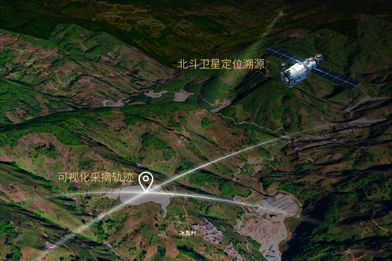 技术团队根据北斗卫星定位,将准备采摘的包括“冰岛1485茶尊”在内的古茶树等采摘范围确定,做好电子围栏;然后由工作人员携带定位设备,实时呈现数字化采摘轨迹。