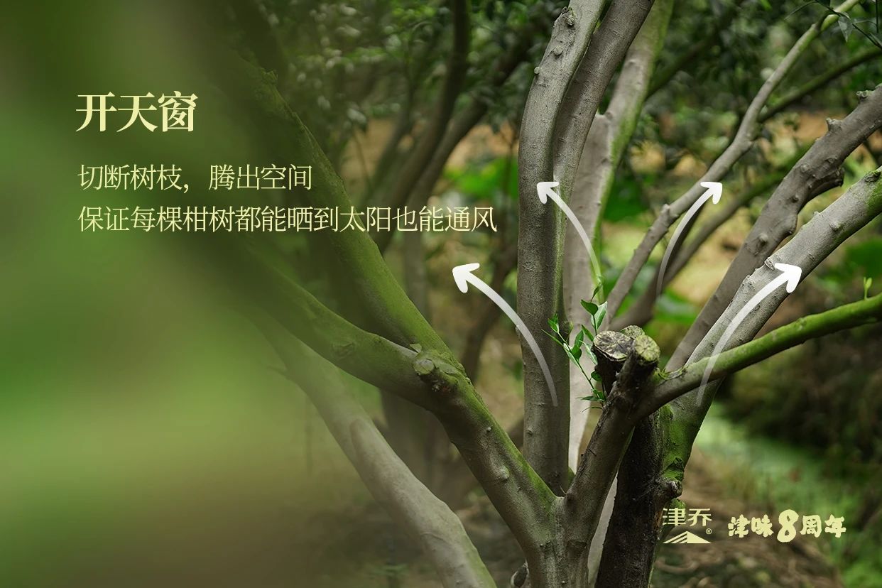 最特别的是,每棵树都要“开天窗”,即切断一些树枝,腾出空间,让阳光能够充分照在每一棵柑树上,保证都能晒到太阳也能通风,这样柑树更好生长,柑果品质自然有保障。