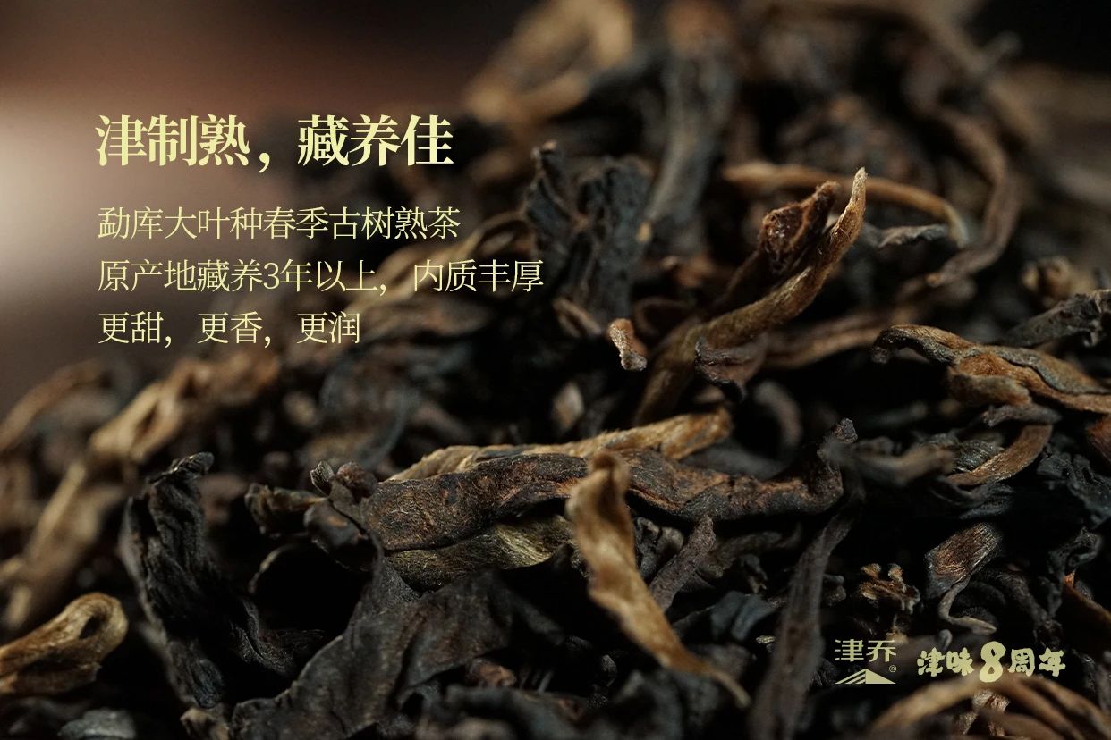 津乔的熟茶工艺和茶品一样,在茶圈也是专业标杆的存在。津味小青柑8.0,津乔依然使用勐库大叶种古树春季发酵的熟茶为“筋骨”,品悦版选用三年陈熟普,尊享版选用十年陈熟普,内质丰厚,甜润感更强,耐泡度更佳。