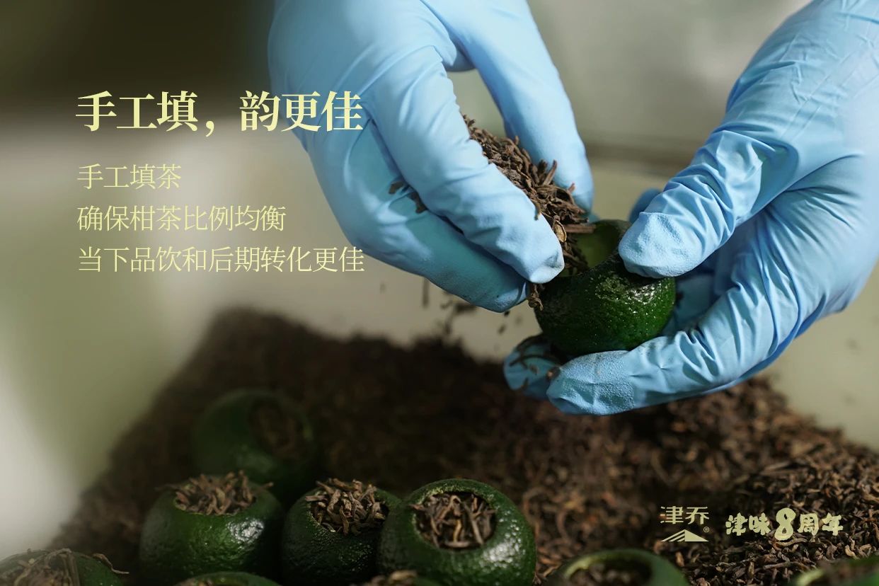 除了地道柑果,正宗地道的津制熟茶更是造就“金奖小青柑”的秘方。