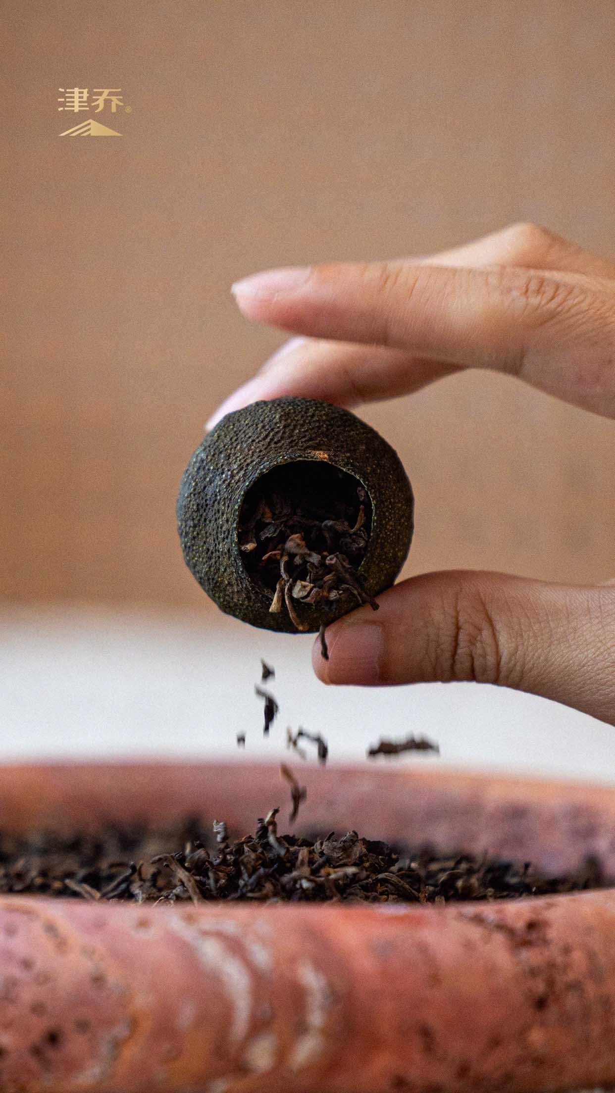 填充的熟茶,必须是在云南原产地,经过良好渥堆发酵、陈化,转化出如米汤般绵密质地的优质熟普。它像一位功底深厚的老戏骨,托住了小青柑这位“青春偶像”的戏,让整场表演既有亮眼的外在,又有内涵可回味。