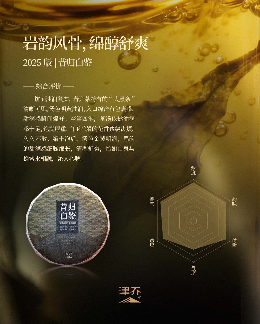 津乔云白大作“昔归白鉴”现已在全国津乔门店上市,若你喜欢喝白茶,也好名山古树,这款茶不容错过。