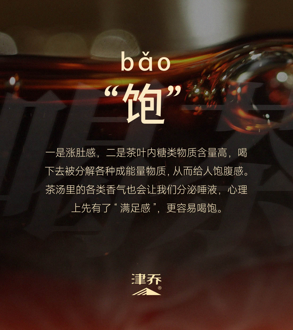 我们常说的“喝茶都喝饱了”,一方面是这种涨肚感的一种轻松表达;另一方面是茶叶糖类物质含量高,除了能被人体直接吸收利用的单糖,多糖在各种因素下会分解成能量物质,在短期内同样会给人体提供能量,从而给人一种饱腹感。