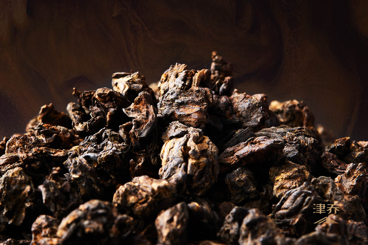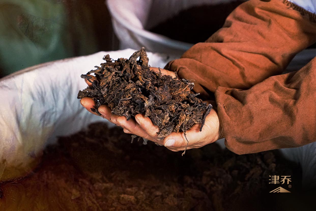 不同于人工合成的茶化石,津乔坚持以自然发酵,让茶叶在漫长岁月里自然凝结、转化,最终形成颗粒饱满、色泽温润的天然茶化石。而这种遵循自然规律的制作方式,不仅保留了熟茶本身的醇厚与温润,更赋予了茶化石独特的口感与韵味。