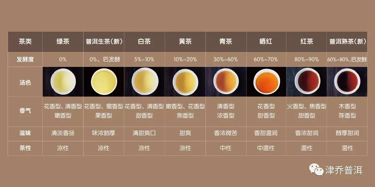 有过一些喝茶经验的朋友都知道中国有七大茶类:绿茶、红茶、白茶、黄茶、青茶(乌龙)、黑茶、普洱茶(普洱是否划入黑茶暂不论)。不同茶类的划分,并不只是我们看到的“颜色”,而是与一个专业术语——“发酵度”有关。