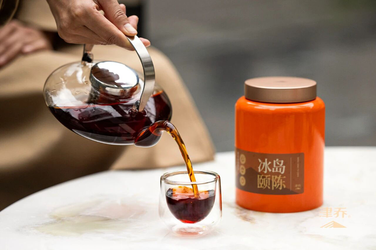 △津乔“冰岛颐陈“,陈皮和熟茶都已历经3年以上时光藏养,煮饮同样甜润糯滑。