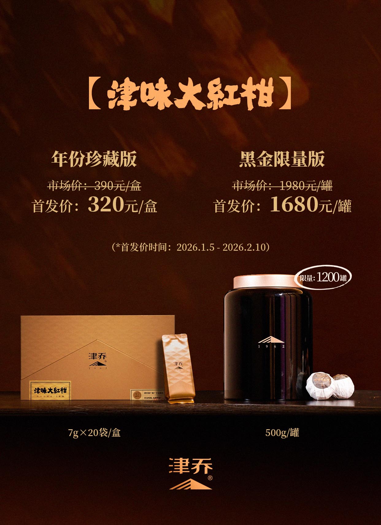 “年份珍藏版”是津乔首次推出的7年陈解块版本,适配日常品饮;“黑金限量版”升级全新包装与规格,主打原料好、份量大,辨识度拉满,专为收藏而生。