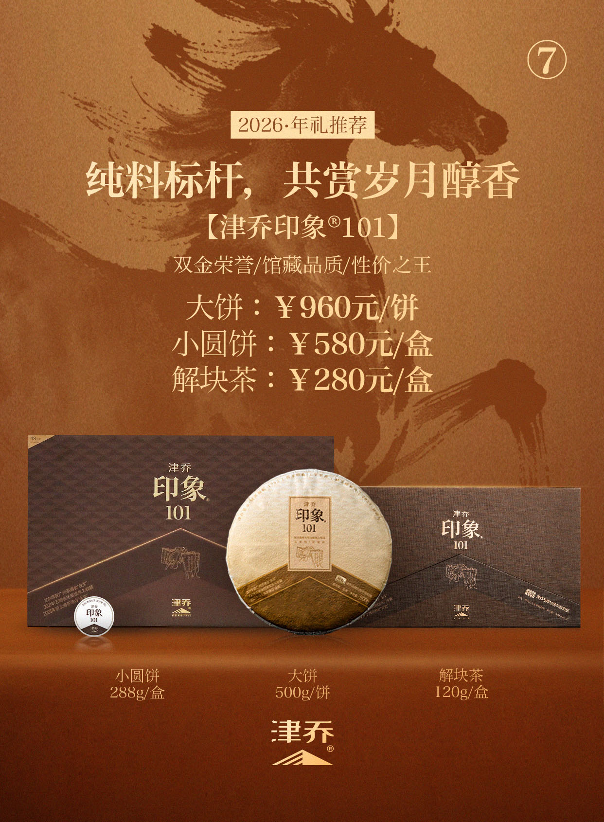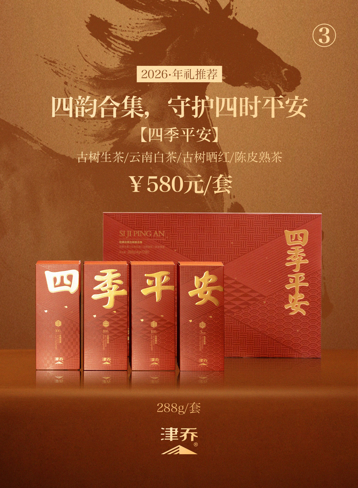 津乔九款年味好茶,将名山风土与时光醇化,凝为可品可藏的岁末心意。这个马年,以津乔好茶为媒,敬岁月无恙,贺新春安康。愿茶友们新岁如茶,越陈越香,回甘绵长,福泽常伴。