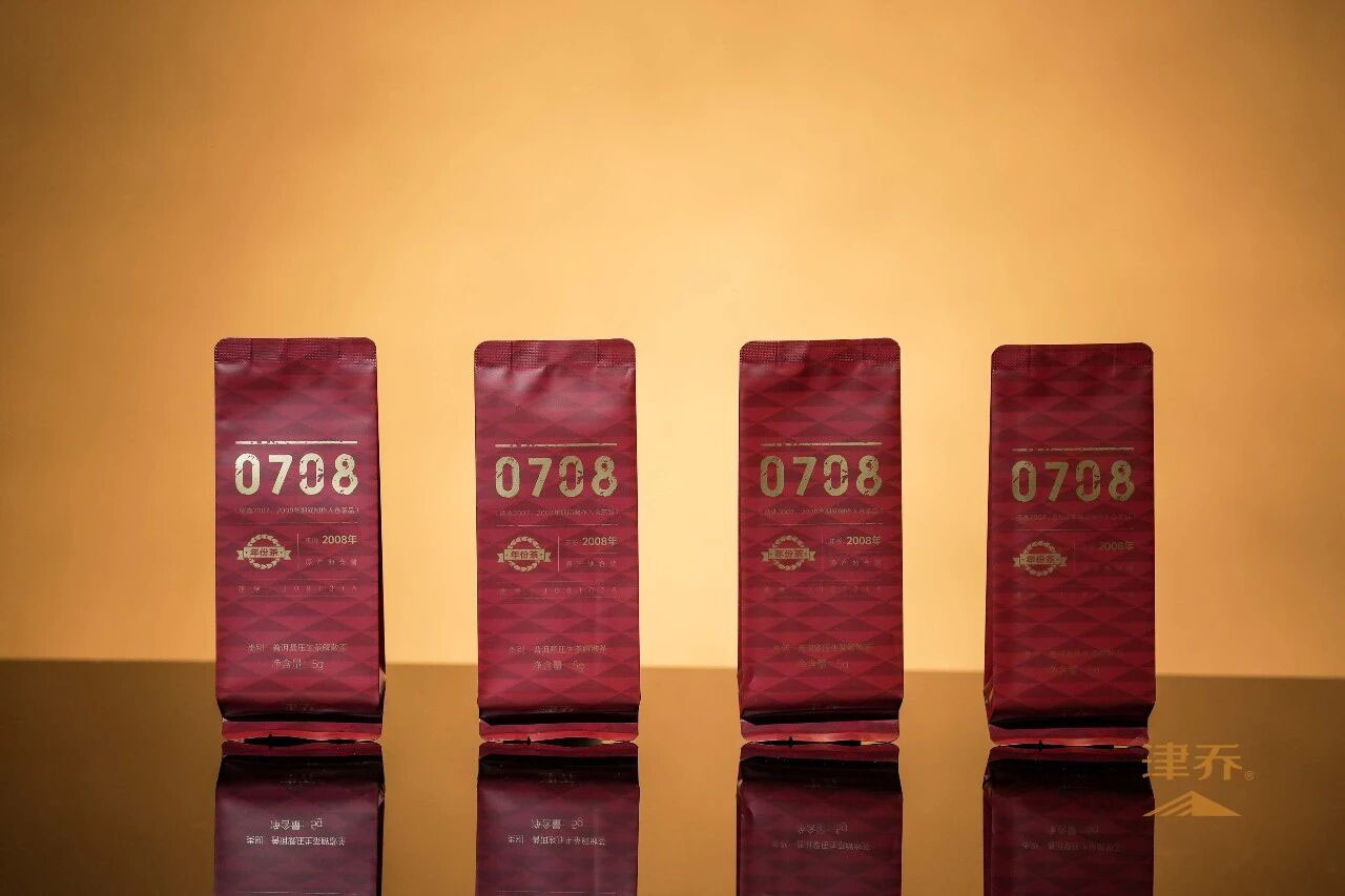 708年份茶,臻选2007-2008年间制作并紧压存放的精品好茶,是津乔年份茶的上品。解块推出的生茶版本,经过十余年原产地自然仓陈化,蜜香、参香与陈香交织融合,汤质醇厚饱满,回甘生津持久、喉韵悠长。