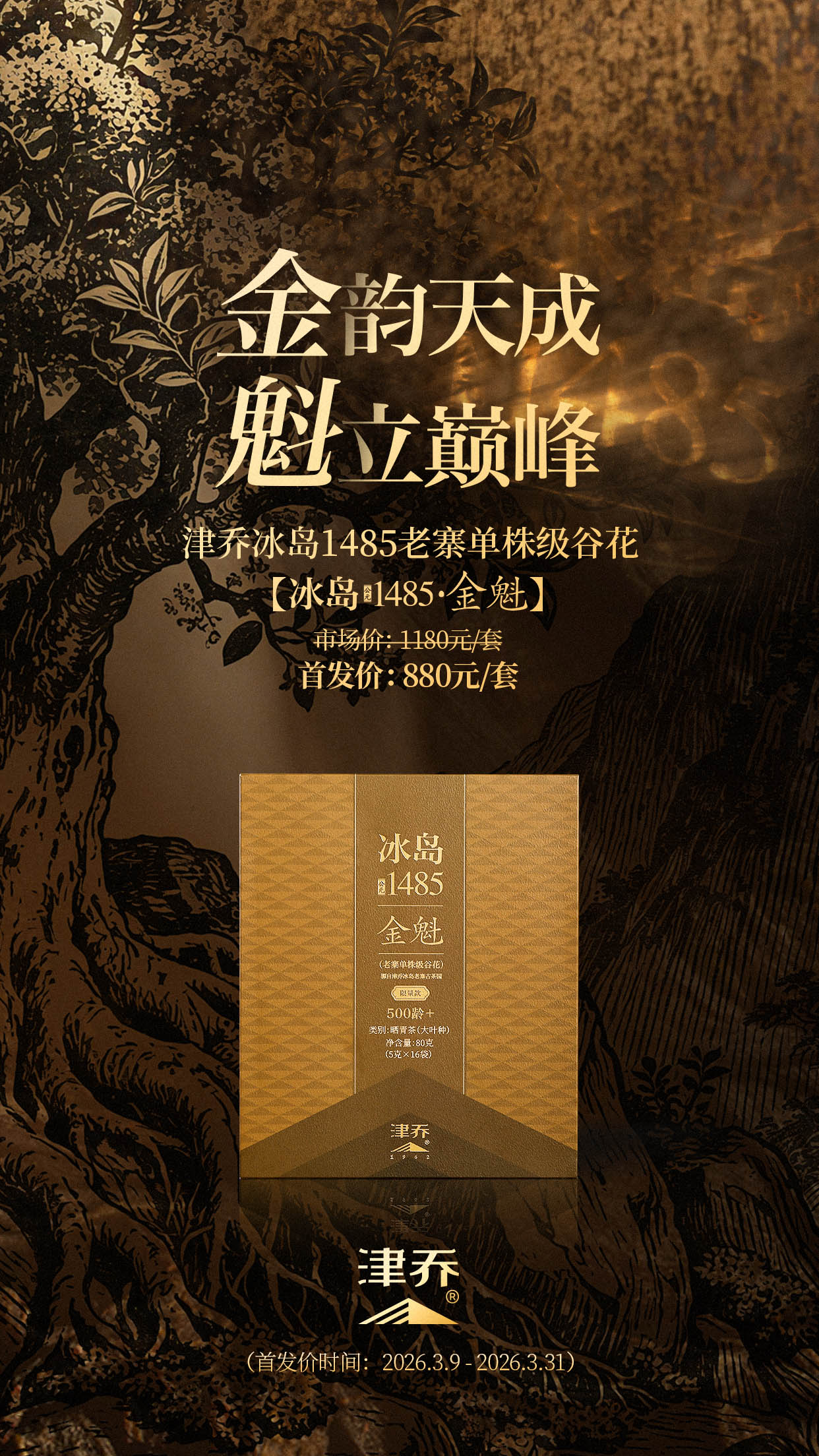 魁首之味,稀贵自成。“冰岛1485·金魁”,是津乔以数载冰岛深耕为基,对“魁首之味”的又一次郑重确认。“冰岛1485·金魁”现已上市,恭迎品鉴。