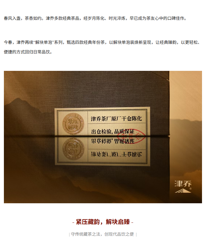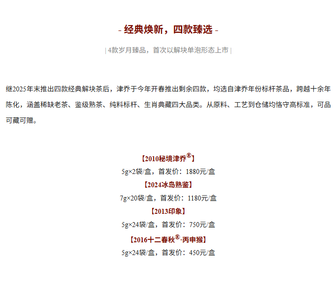 经典珍藏,极致分享,津乔4款经典好茶解块装推出
