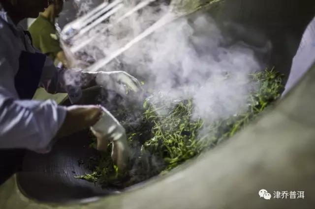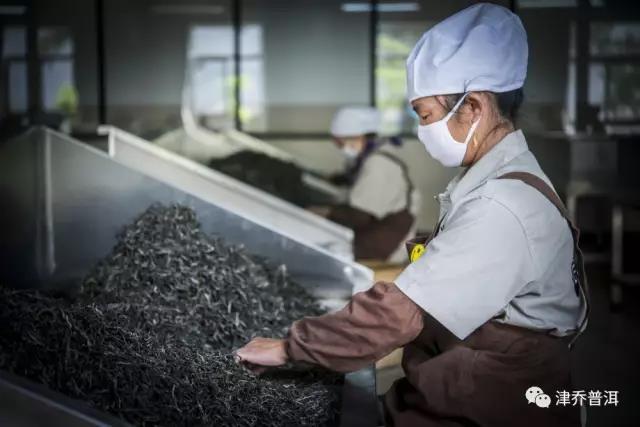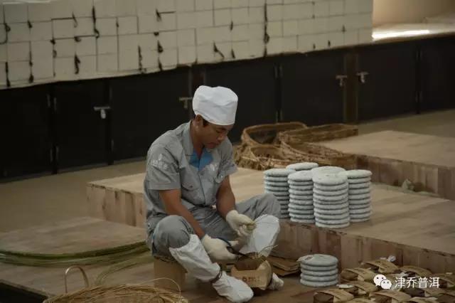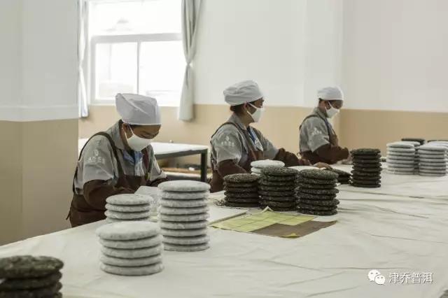 在津乔茶厂,我们时常看到的都是繁忙的场景,一群衣装齐整的工作人员,在各个岗位认真的劳作,拣剔、包饼、扎筒、杀青……
