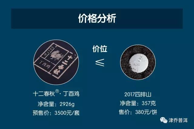 “十二春秋®·丁酉鸡”套装内的茶总共约3千克,如果换算成357克的茶饼,约等于380元,仅相当于2017年“四排山”的价格。
