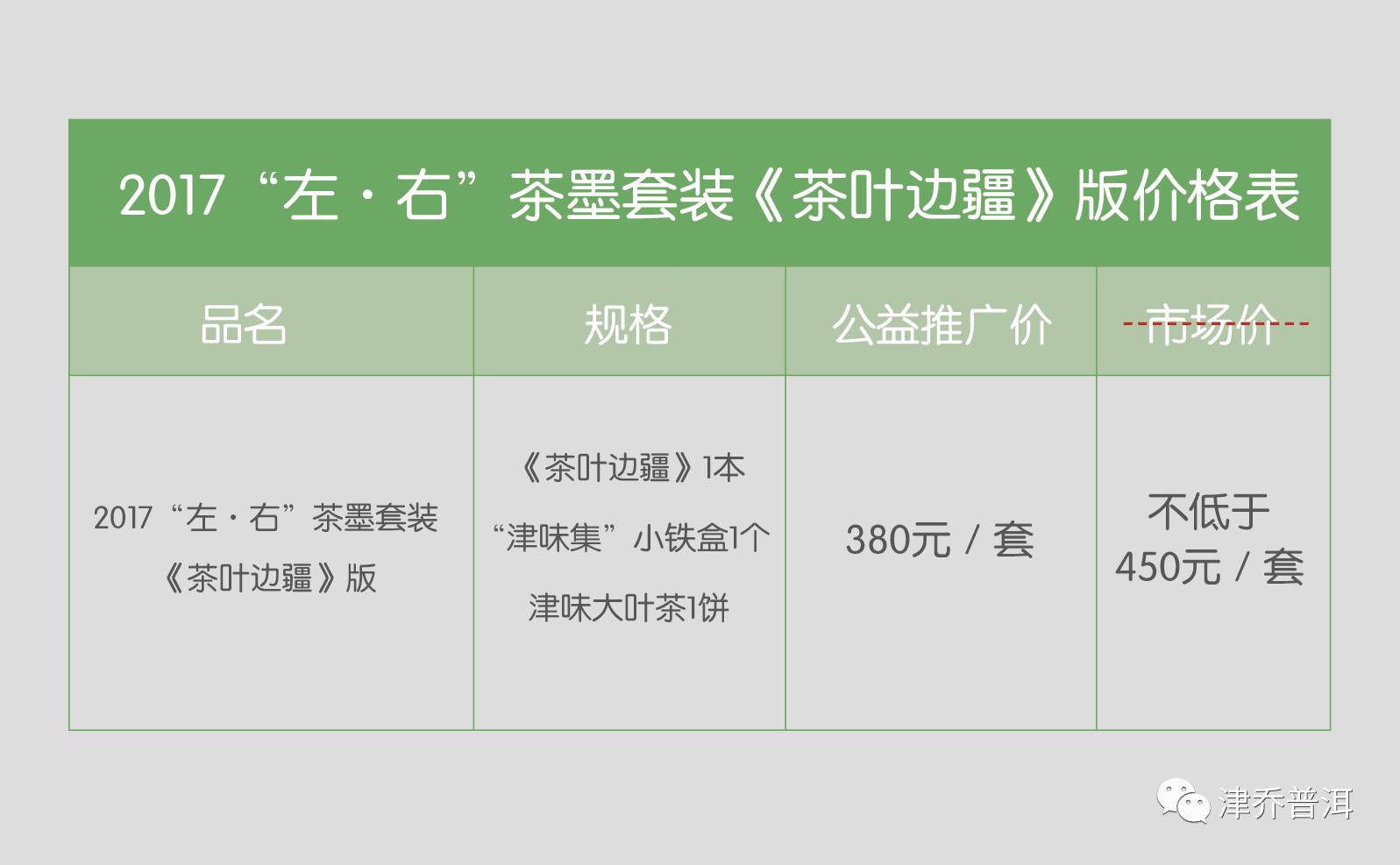 “左·右”茶墨套装《茶叶边疆》版原市场价格不低于450元/套,但考虑到产区公益推广,因此套装将仅以380元/套的公益价推出。