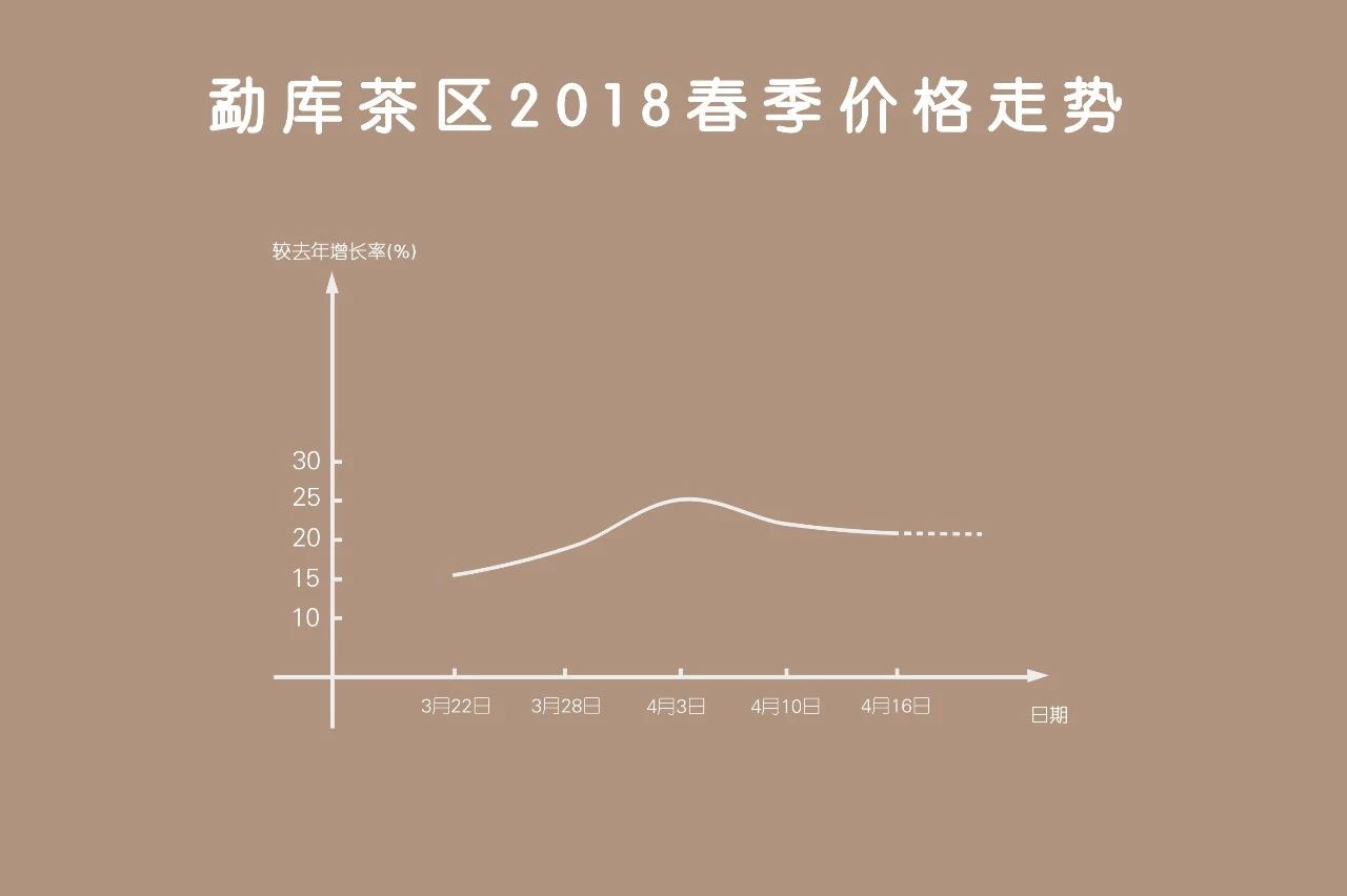 总体来看,2018年因为冬春干旱,春茶整体减产。产量减少,加之需求不断增加,至今2018年春茶季涨价已经成定局。接下来,因春尾茶量较少,对价格构不成影响。据保守估算,2018年勐库茶区春茶较去年整体涨价15-25%。