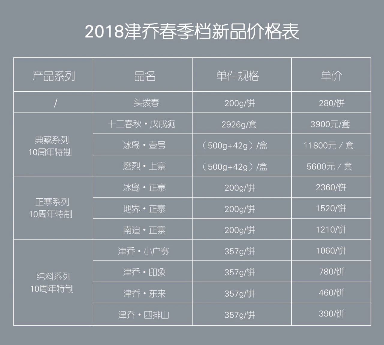 3,定价亲民,性价比高。从春季档发布来看,定价虽然略有上涨,但仍低于原料涨幅,这是津乔出于企业自认考量。大部分产品不排除在5月的春季调价中就会有调整。(一般情况春季调价当年春茶不调整)
