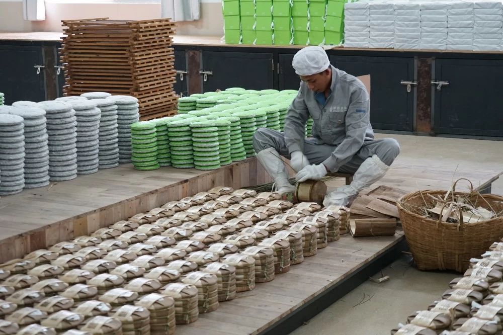 4月14日,津乔寻茶季茶友到达津乔标准化精制厂参观,部分“头拨春”在最后的包饼和扎筒装箱环节,预定茶品的津粉将陆续品尝到这杯“比早更早”的春天滋味。