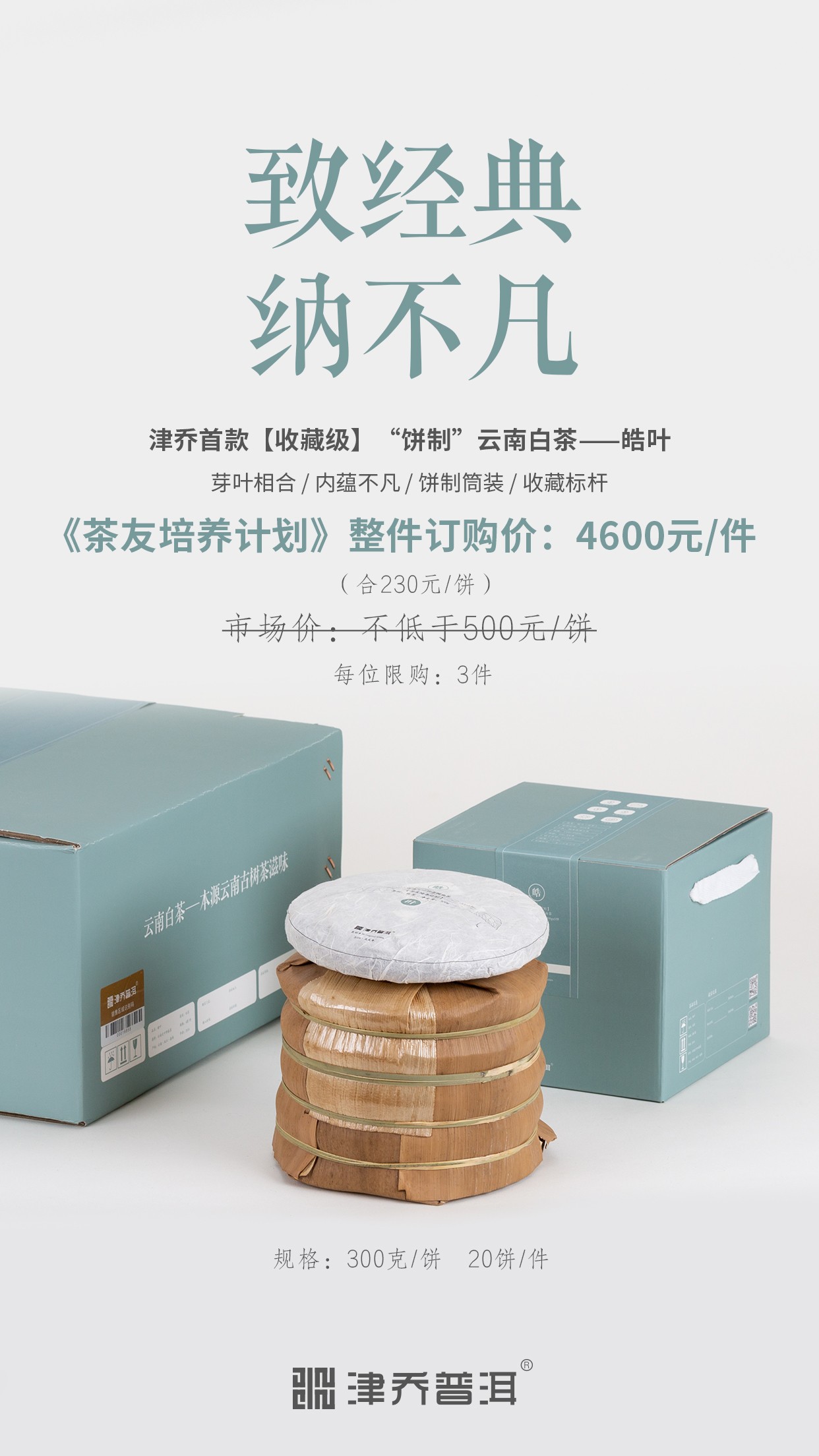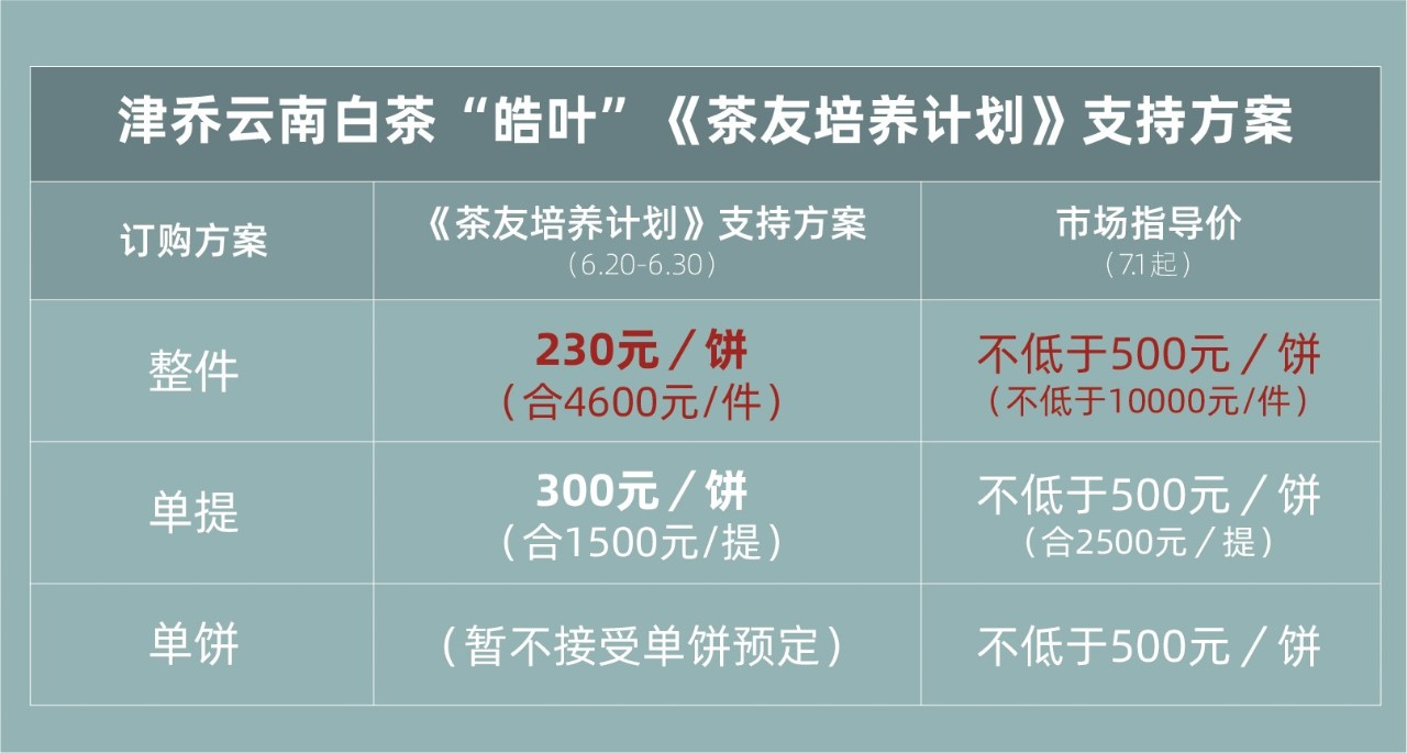 作为津乔《茶友培养计划》首款云南白茶回馈项目,更多的是以公益的方式与茶友们分享经典云南白茶的收藏喜悦。以超值回馈开启云南白茶收藏订购模式。