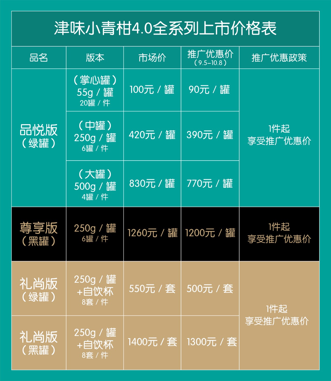 为答谢津粉的厚爱,从9月5日至10月8日,津味小青柑4.0三版本在上市初期推出《上市推广活动》,特别给到超值回馈价,10月8日即恢复原价。