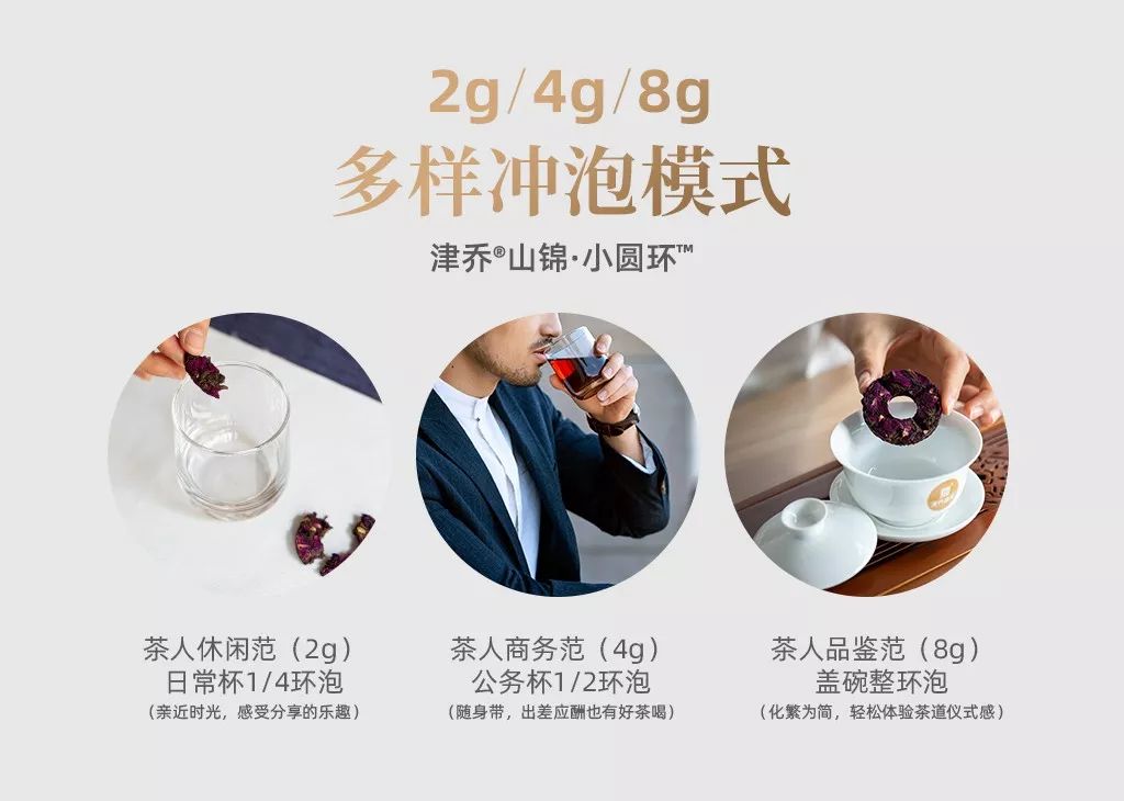 茶品特别采用津乔独创小圆环™形制,方便携带,多样开启,缔造出茶人级的现代养生佳饮。