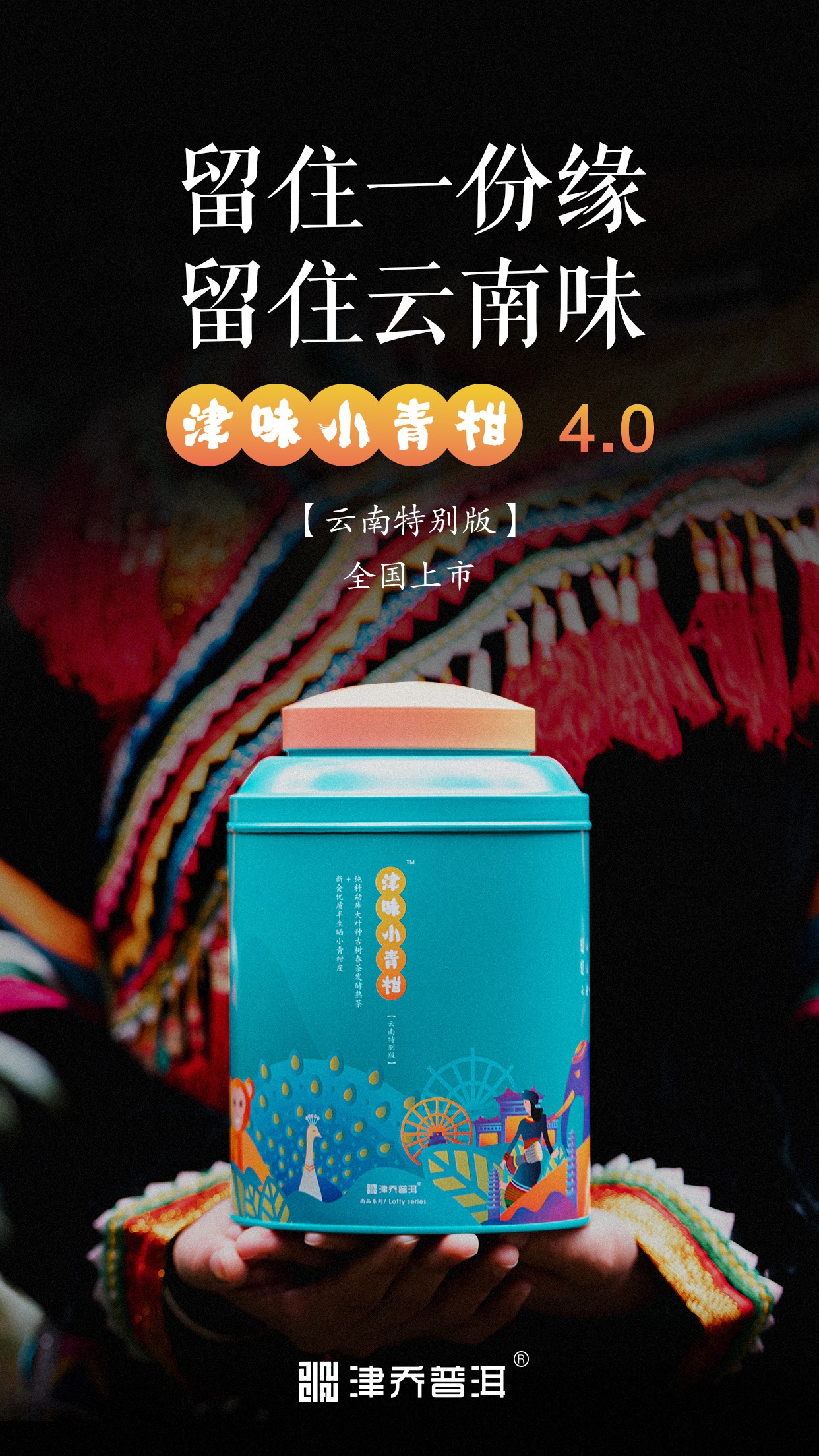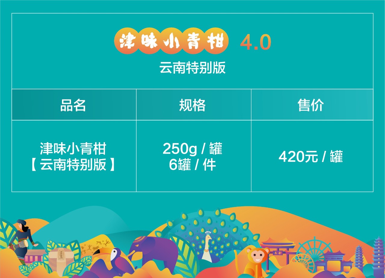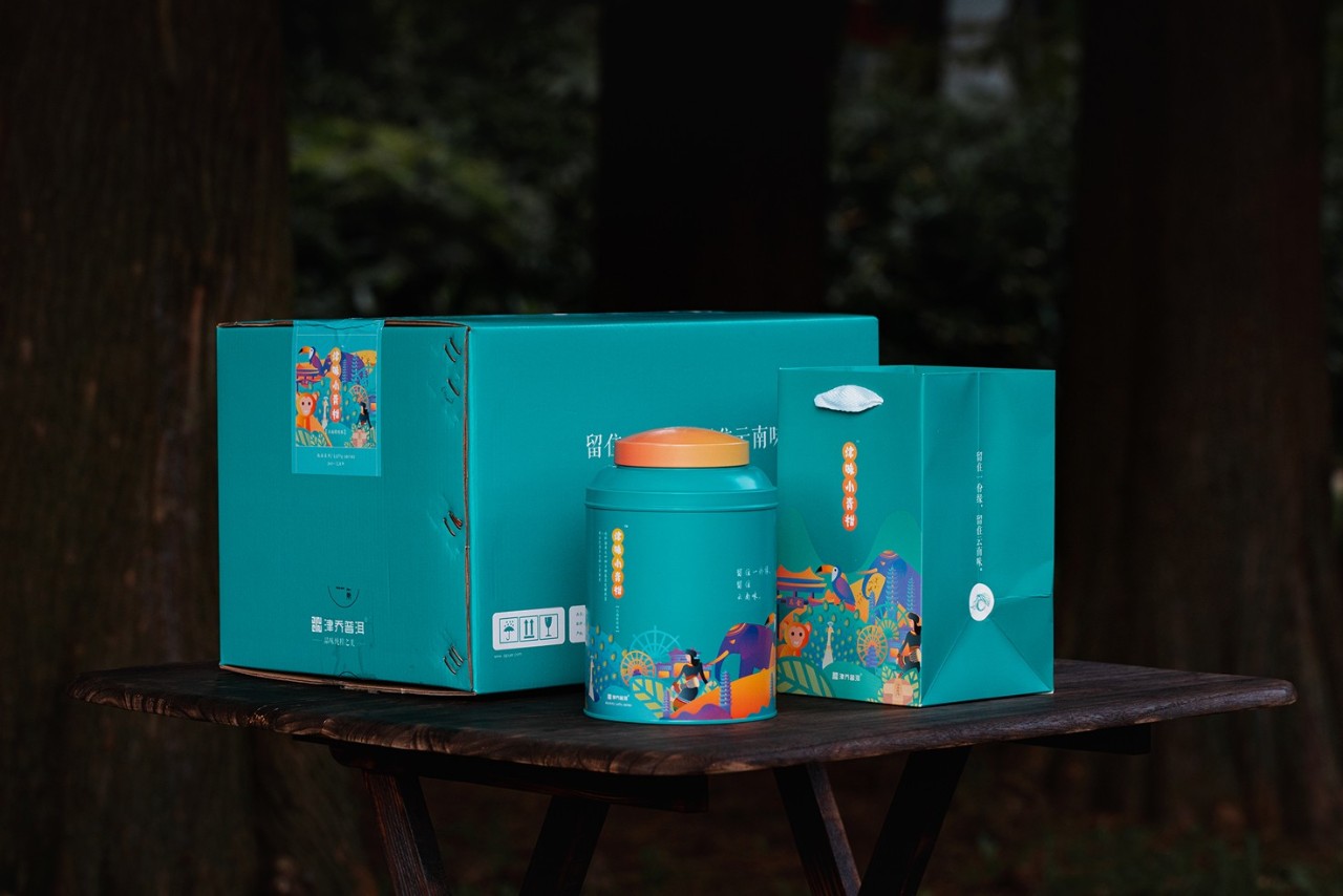 津乔首次设计出品“涵盖云南文化”的文创茶礼:津味小青柑·云南特别版。通过茶,让更多人认识和了解云南文化,感受云南魅力。