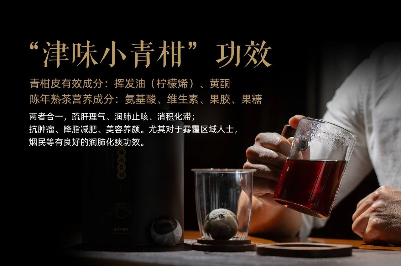 说到最后,喝茶能健康养生是最重要的一件事。作为与药同源的食材,普洱茶与小青柑碰撞出的不止是美味,还有良好的保健功效。